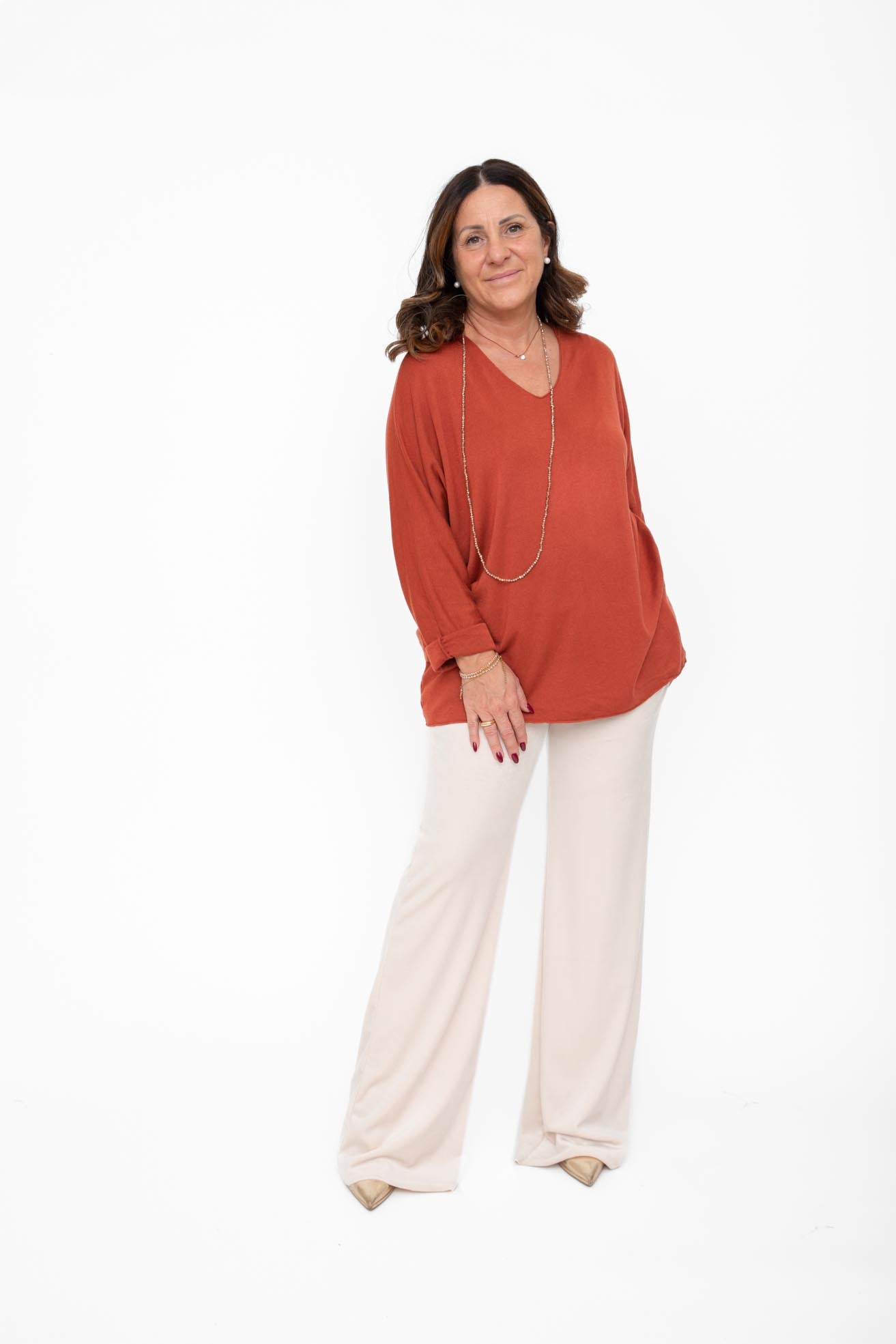E' una maglia adatta a tutte le occasioni. Studiata per vestire le donne che tutti i giorni vogliono indossare qualcosa di comodo, pratico ma molto chic.