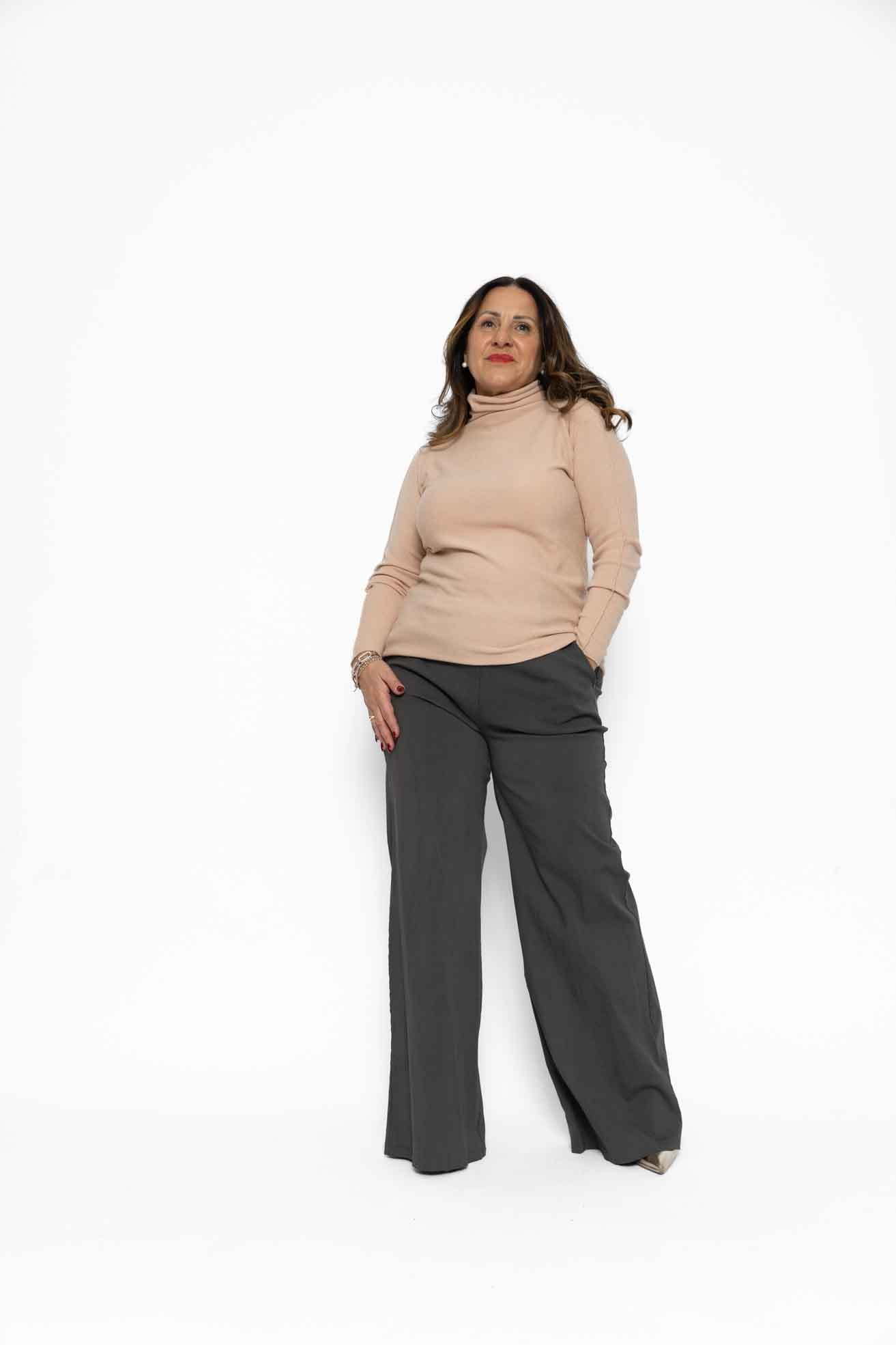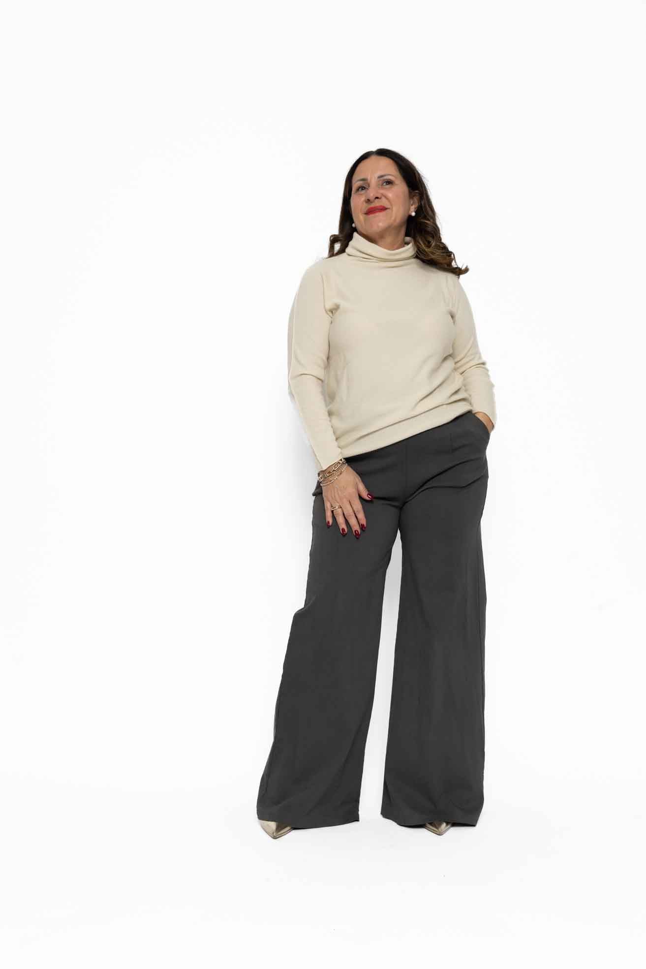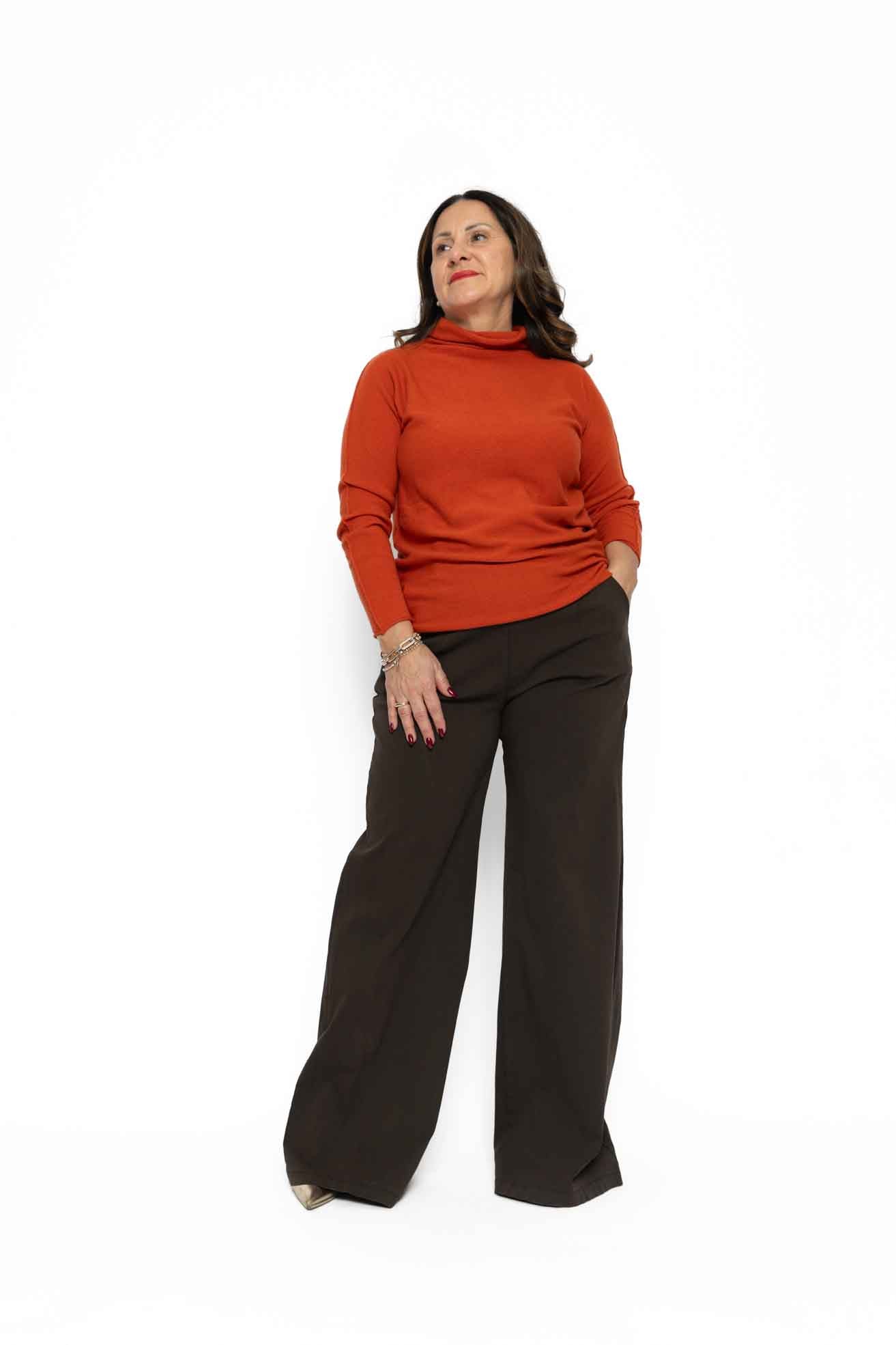 Maglia in morbido tessuto elasticizzato con collo ad anello ideale anche come sottogiacca