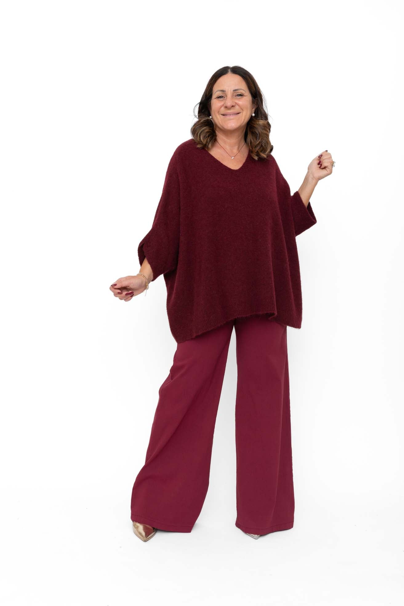 Maglia Alberta con scollo a V e manica 3/4 in morbidissima alpaca
